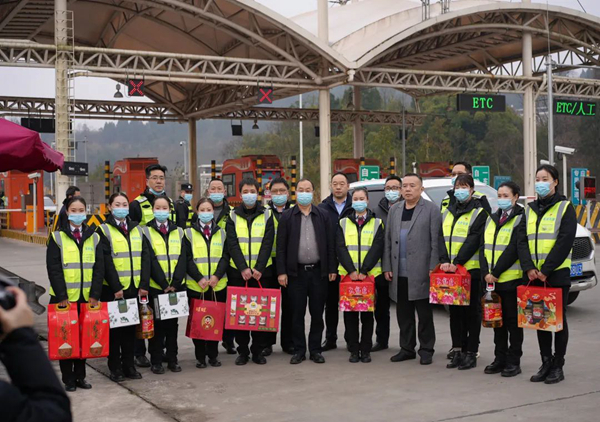 “大家辛苦了,我代表集團(tuán)給你們拜年了!”唐德祥首先來(lái)到橫山收費(fèi)站,向春運(yùn)期間依然奮戰(zhàn)在工作一線的員工致以親切的節(jié)日問(wèn)候和新春祝福,并送上慰問(wèn)品。唐德祥詢問(wèn)了員工春節(jié)期間工作安排和生活保障情況,對(duì)大家昂揚(yáng)積極的精神面貌表示滿意,感謝他們長(zhǎng)期以來(lái)為保障廣大人民群眾的安全、便捷出行,舍小家、為大家的無(wú)私奉獻(xiàn)精神,并希望他們繼續(xù)堅(jiān)守崗位,以優(yōu)質(zhì)的服務(wù)展示重慶建工集團(tuán)的良好社會(huì)形象。
