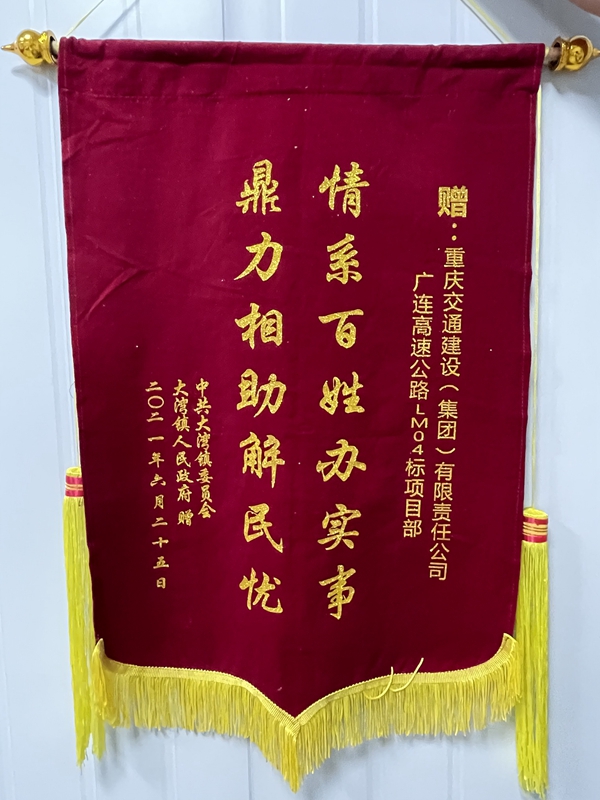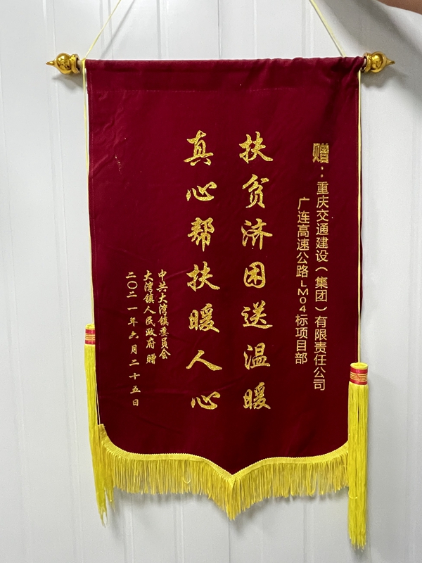 隨即,他們將“情系百姓辦實(shí)事,鼎力相助解民憂(yōu)”與“扶貧濟(jì)困送溫暖,真心幫扶暖人心”兩面錦旗和一塊 “愛(ài)心資助工程”牌匾送給了項(xiàng)目部。
