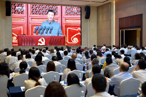 集團(tuán)黨委班子全體成員、所屬各單位黨委班子成員與全體黨員職工群眾一起,通過(guò)電視、網(wǎng)絡(luò)等平臺(tái)集中收看了大會(huì)直播盛況,聆聽(tīng)習(xí)近平總書(shū)記重要講話,感受熱烈而莊重的喜慶氛圍,共同慶祝偉大的中國(guó)共產(chǎn)黨百年華誕。