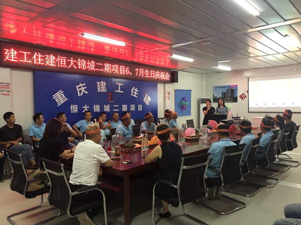“祝你生日快樂!祝你生日快樂!”7月15日下午,伴隨著歡快的歌聲,住建公司承建的恒大錦城項目上一場職工集體生日會在會議室拉開了序幕。
