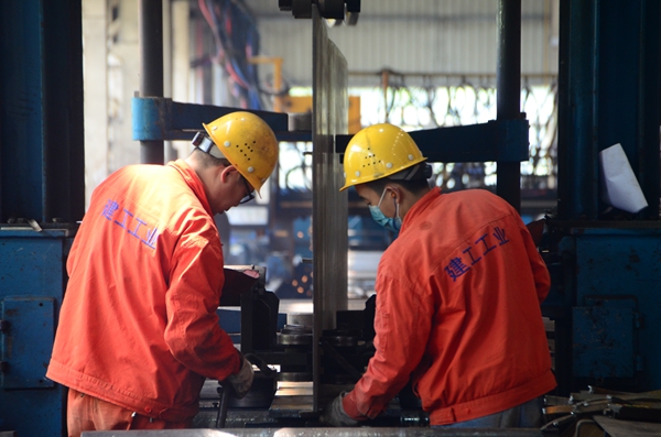 4月2日,工業(yè)公司鋼結(jié)構(gòu)車間里,一線工人正在組立重慶市璧山區(qū)膠輪有軌電車工程項(xiàng)目的H型鋼