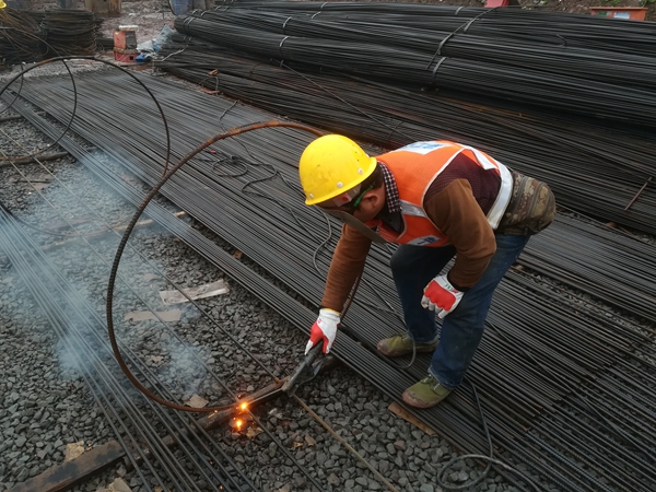 4月23日,十一建公司武警鴛鴦項(xiàng)目鋼筋電焊工正在進(jìn)行焊接作業(yè)