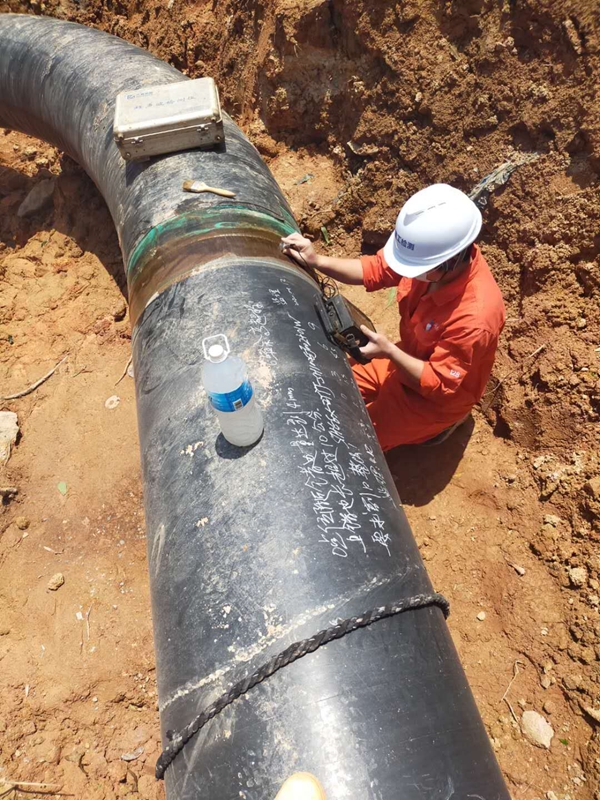 4月23日,安裝集團(tuán)無損檢測公司廣州天然氣利用工程項(xiàng)目部的項(xiàng)目負(fù)責(zé)人正在用數(shù)字式超聲波探傷儀對管道焊接口進(jìn)行超聲波檢測