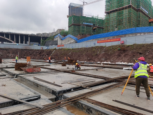 4月1日,城建集團(tuán)市級重點(diǎn)工程蔡家嘉陵江大橋項(xiàng)目工人爭分奪秒搶奪工期